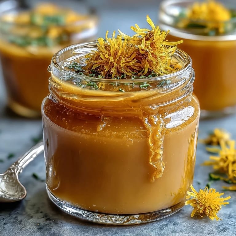 Save Dandelion Jelly with Fresh Lemon and Honey captures the essence of spring in a jar. This bright, floral jelly bursts with the subtle flavors of foraged dandelion blossoms, elevated by the zing of fresh lemon juice and the sweetness of golden honey. Whether spread on warm toast, dolloped on creamy yogurt, or used as an unexpected glaze, it brings a touch of nature's sunshine to your table.