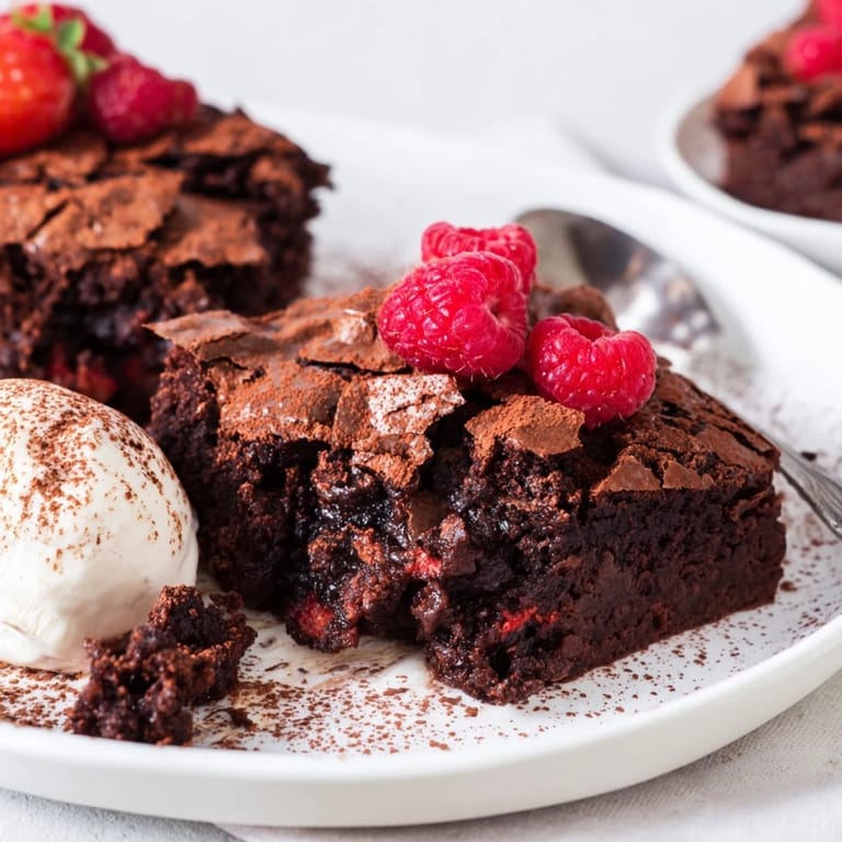 I love serving this with fresh raspberries because the tartness cuts through the richness, but strawberries or a pile of whipped cream work just as well. Sometimes I dust it with cocoa powder for a minimalist look, other times I go all out with powdered sugar and berries. Either way, it looks impressive on the table and tastes even better than it looks.