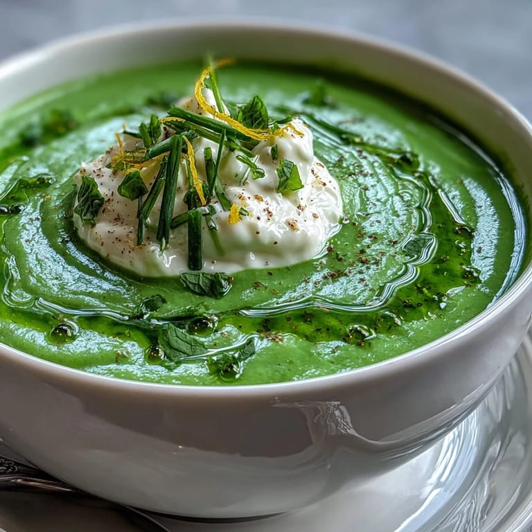 Save Sometimes there's just something about the way a handful of fresh peas snap in your palm that tells you spring has officially arrived. My first attempt at this soup was a spontaneous weeknight experiment, inspired by an overflowing farmers’ market stand and the stubborn chill in the April air. I remember grating lemon zest for the ricotta, the sunny scent filling the kitchen so brightly I almost forgot about dinner entirely. There’s a gentle comfort in blending together such pure, green ingredients and then swirling in that verdant mint oil at the very end. This is the kind of dish that makes me want to linger by the window, soup spoon in hand, hoping the sun will stay just a little longer.