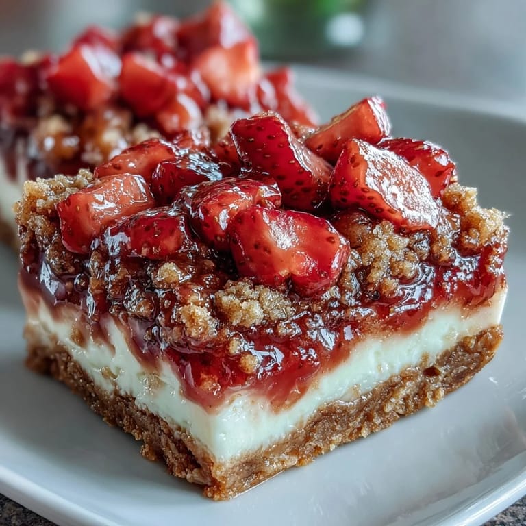 I started making these every June when strawberries flood the farmers market and my kitchen smells like sunshine. My kids love helping me hull the berries, though half of them never make it into the bowl. One year I doubled the recipe for a bake sale and sold out before I even finished setting up the table. Now I hide a few bars in the back of the fridge before serving them to guests, just so my family gets a taste too.